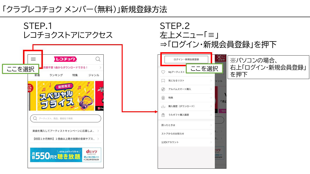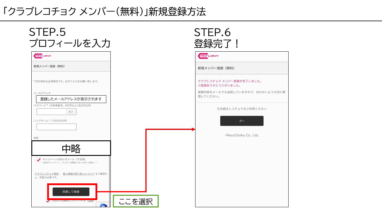 - 「クラブレコチョクに新規登録(無料)する」を押下